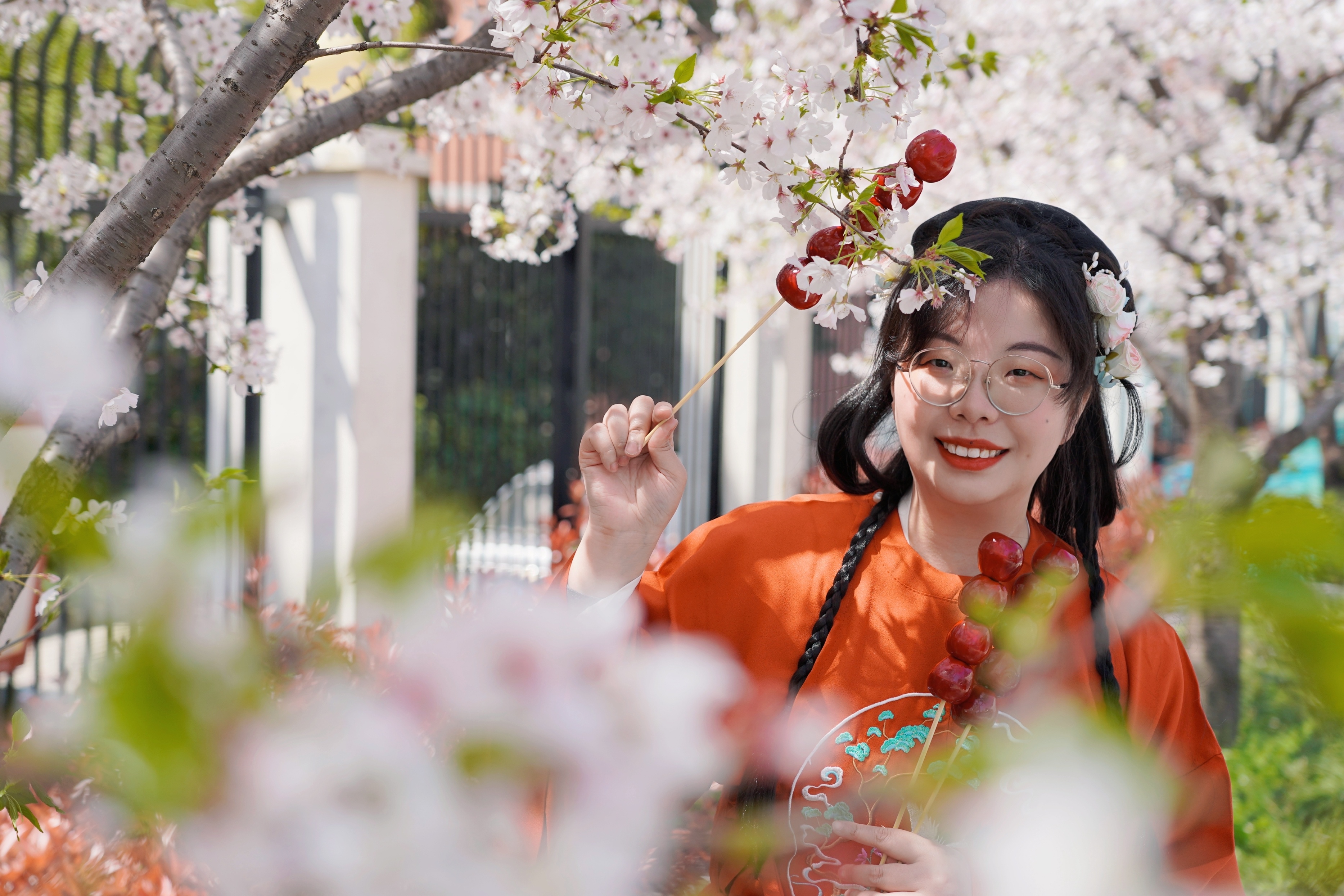 “这边人少,天晴的时候穿一套好看点的汉服,街拍很出片。”汉服爱好者墨墨还特意准备了“糖葫芦”道具。樱花树下,俏皮古风少女的形象令人眼前一亮。