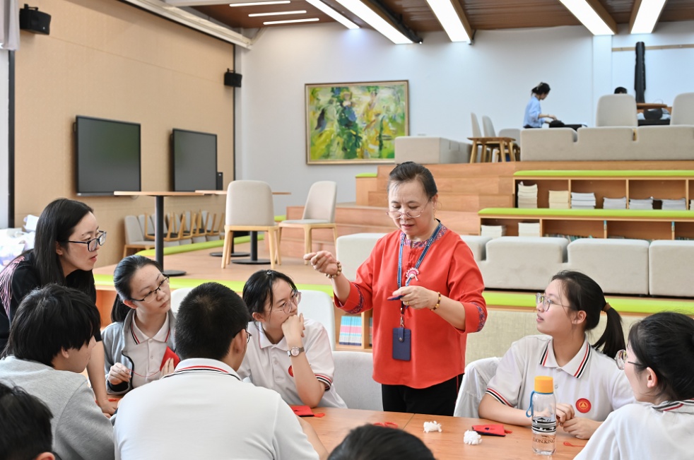 浦东绕龙灯、沪谚、古琴艺术、三林刺绣、三林瓷刻、三林标布……三林中学以非遗项目为载体,整合高校、社区和非遗传承人等非遗文化资源,面向全校学生开设十几门非遗特色课程。每周五下午,是三林中学一周里最热闹的时段,陆大杰、洪崇岩、龚淑贞、张宗贤、刘佩玉、曹琪能、周曙明、朱宇清、戴岩、陈艺、叶炳华等非遗传承人、非遗文创指导老师,走进校园开展非遗传承常态化教学。
