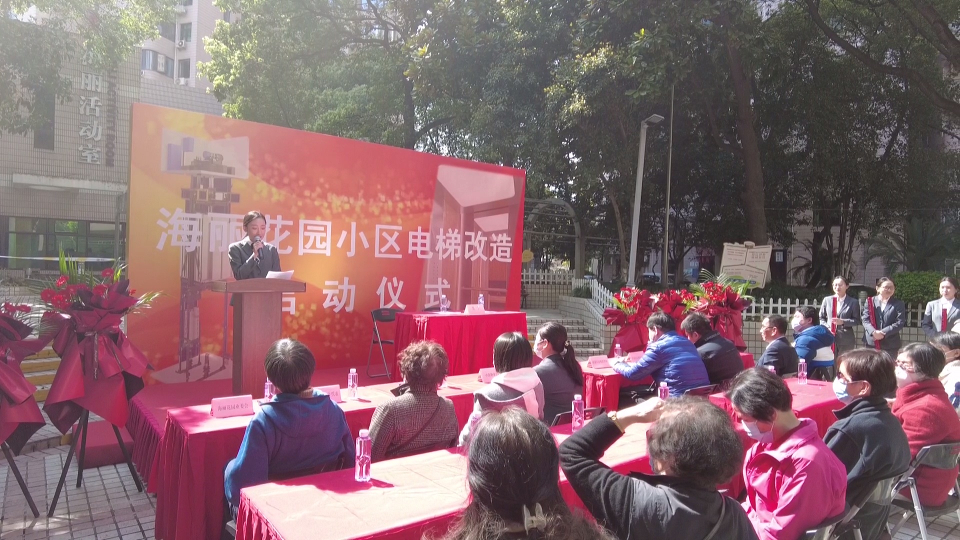 “让我们用热烈的掌声祝贺海丽花园电梯改造剪彩成功!”随着启动仪式结束,海丽花园电梯改造工程正式启动。海丽花园有3栋住宅楼,576户,共9台电梯。电梯从当初购买到使用至今已经有26年了。虽然电梯一直有专业单位进行维保,但由于使用年限过久,电梯这些年故障频频。业主曾阿姨告诉记者:“遇到电梯门打不开,好多人都关在里面。有时候电梯运行到中间停下来了……”业主薛阿姨也告诉记者:“因为设备已经运行了20多年了,从安全角度来说,已经到了非换不可的地步了。小区的居民呼声也很高,现在正好政府有这么好的扶持政策出台,所以我们要利用好这个机会。”