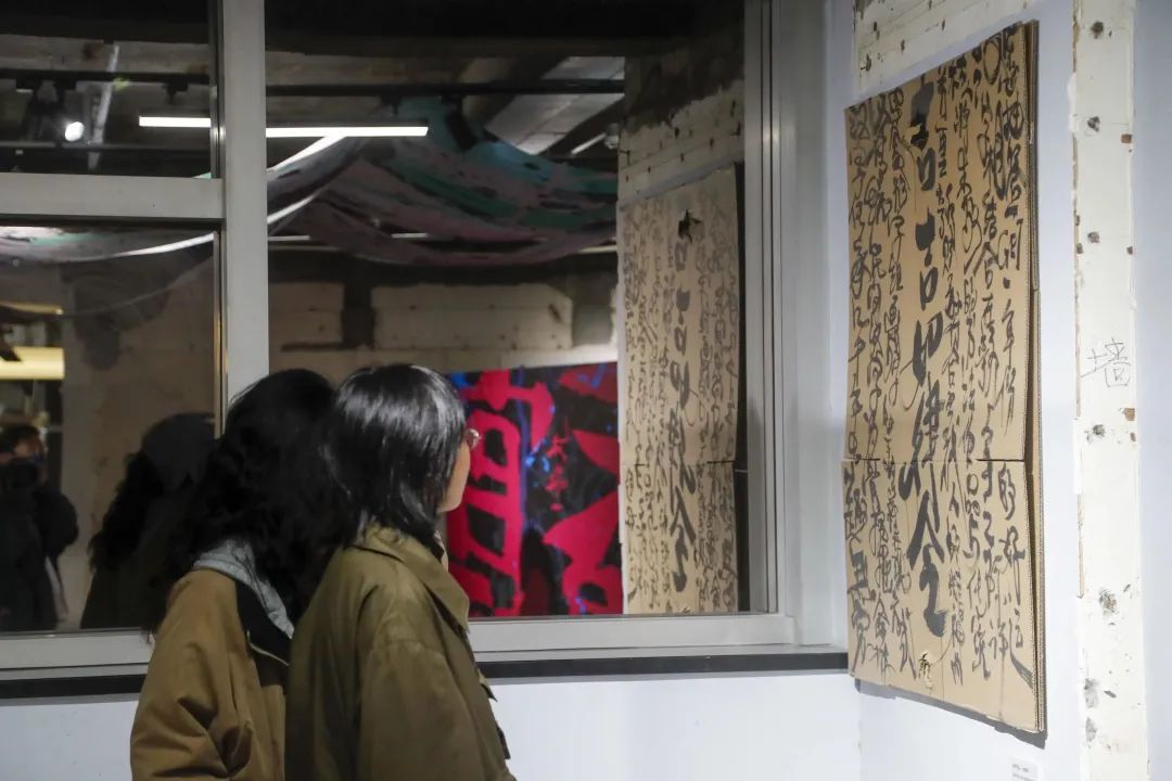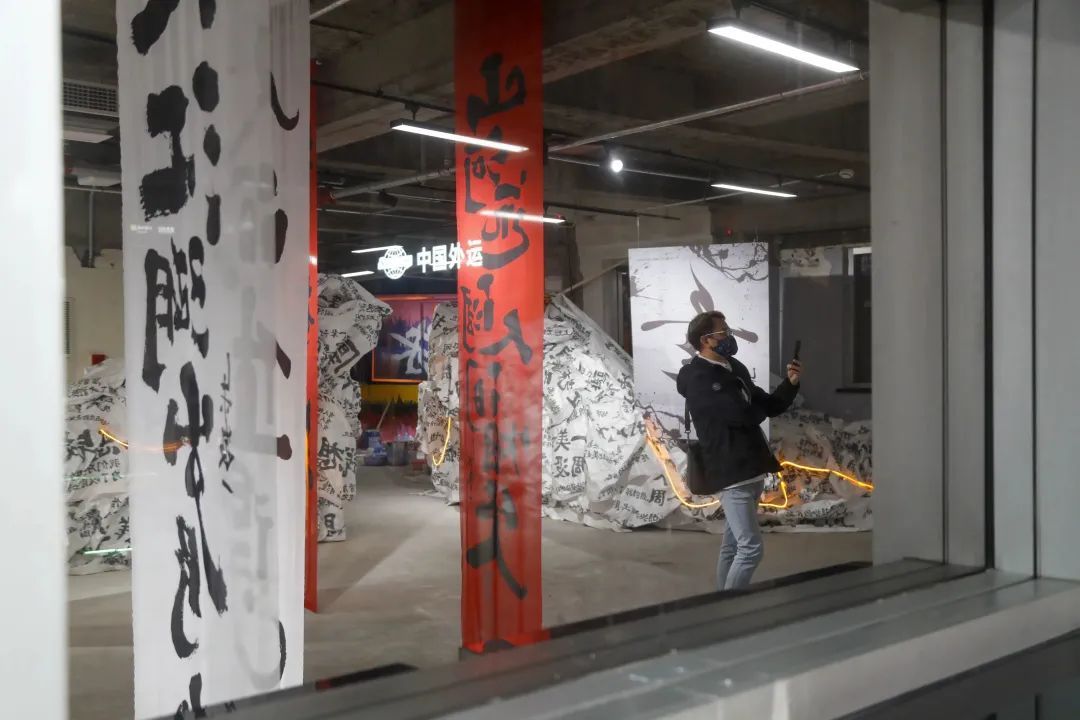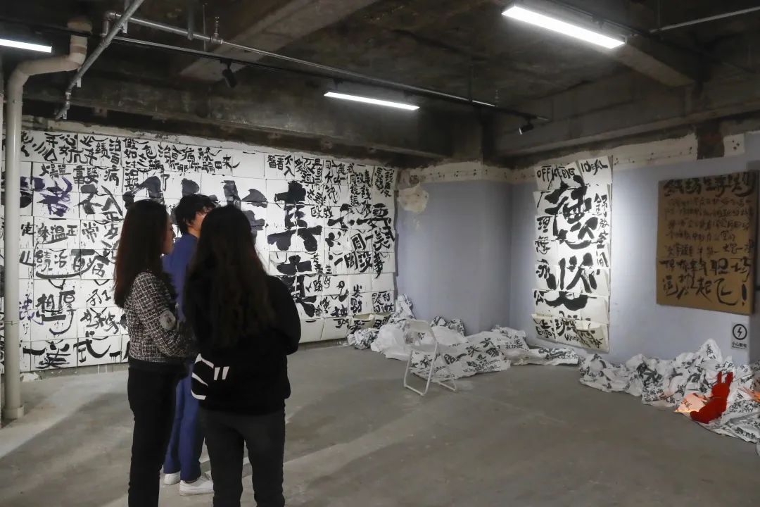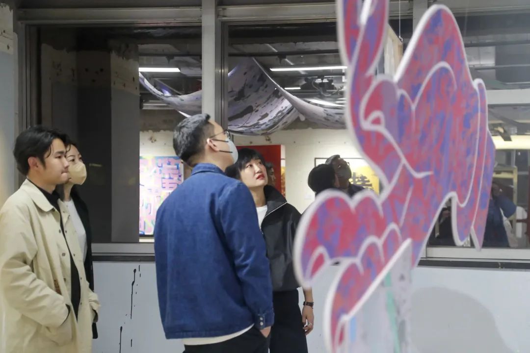 “第一次在这样一个办公楼或者说在一层还未完工的毛坯房里办展,打破了艺术高高在上的刻板印象,将艺术开放、融合到百姓生活以及各个行业。很爽!”比起在传统美术展馆展览,朱敬一说,“这里突破了空间限制,像这幅L形的作品《凌波微步》,长约15米,宽约7米,从上至下铺满的呈现方式,这是区别于美术馆的。当然也会遇到困难,由于之前没有相关的办展经验,很多装置到了现场才会发现,预想好的色彩无法呈现到最佳效果。”据悉,此次展览从策划到布展,耗时近一个月。