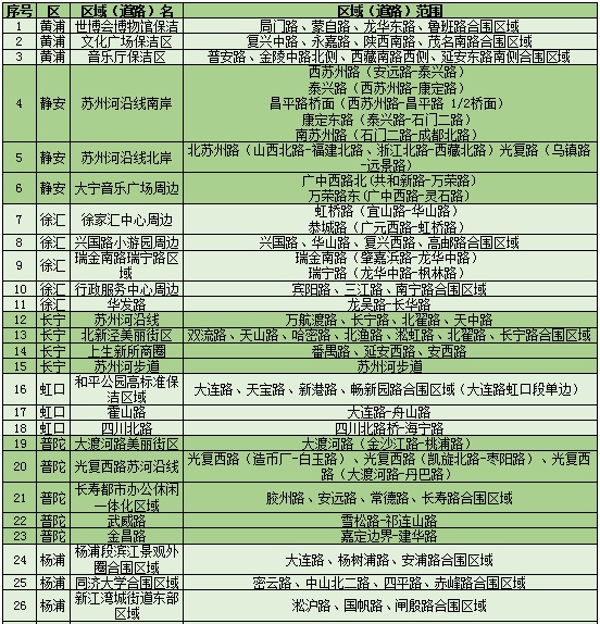 市绿化市容局介绍,近年,上海市道路保洁以高标准保洁为引领,带动本市道路和公共广场保洁水平全面提升。三年来,本市已成功创建高标准保洁区域(道路)208个。2023年,本市环卫行业将持续推进62个高标准保洁区域建设工作。预计至2023年底,实现黄浦江核心段45公里岸线、苏州河中心城区42公里岸线沿线高标准保洁全覆盖。其中青浦有4个高标准保洁区域(道路)在内,详见↓