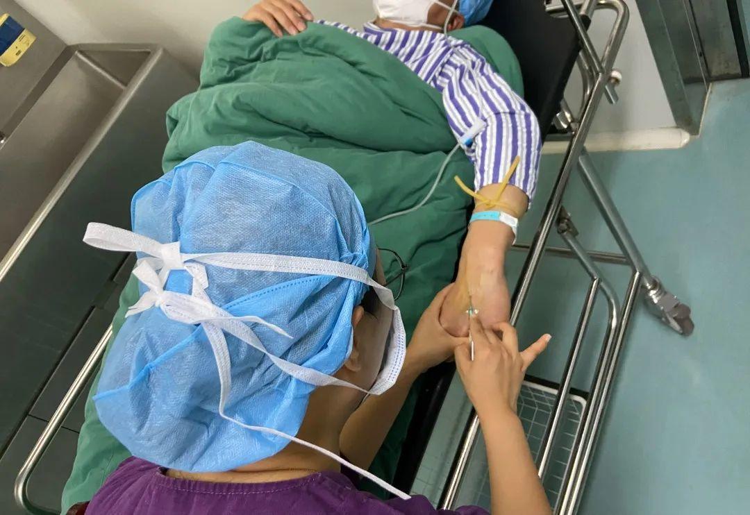 巡回护士会避开手术区域,挑选粗直的静脉进行穿刺。这个时候患者会问:“我是不是要麻醉了?”我们会回答:“还没有,因为你没有进食进水,我们先给你补充点液体。这也是术前的准备工作的一部分。”