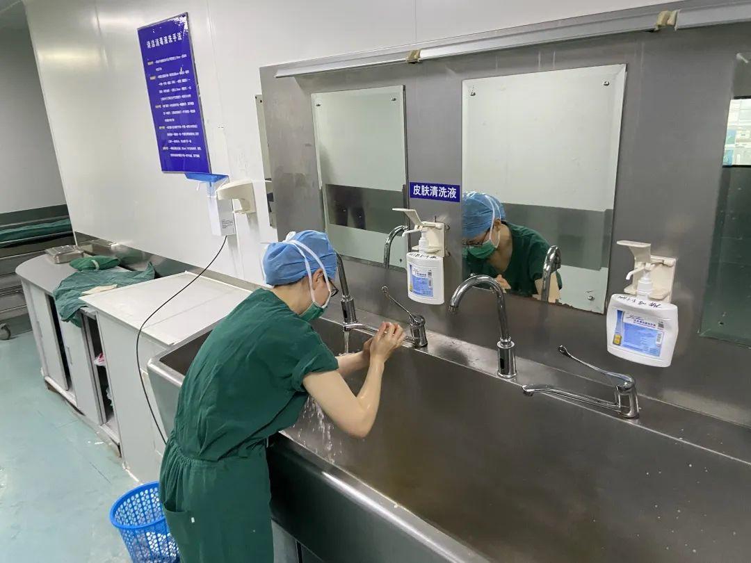 手术医生和器械护士整理好仪容仪表后进行外科洗手,目的是去除手和手臂皮肤上的暂存菌,这样可以有效地防止术后感染。