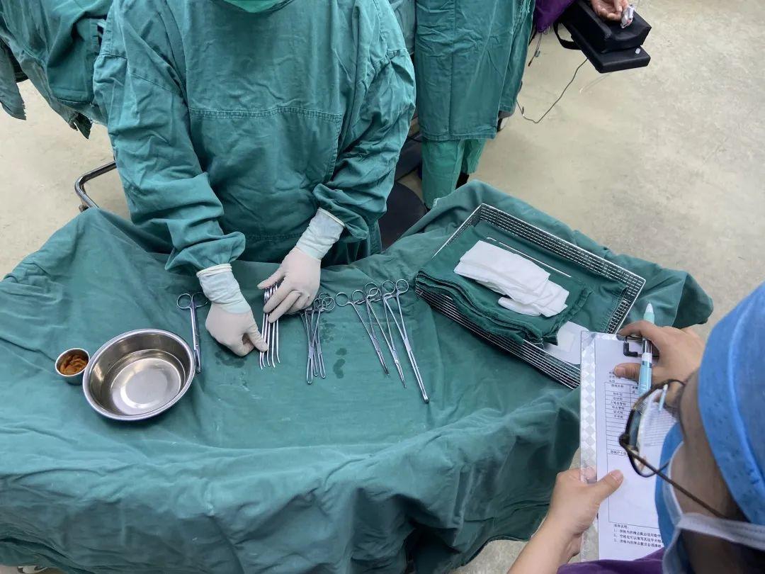 器械护士和巡回护士在手术开始前、关闭体腔前,以及体腔完全关闭后、缝皮前共同清点纱布、缝针、刀片,并检查其他手术器械完整性。确保每次清点无误,避免有物品遗留在患者体内。