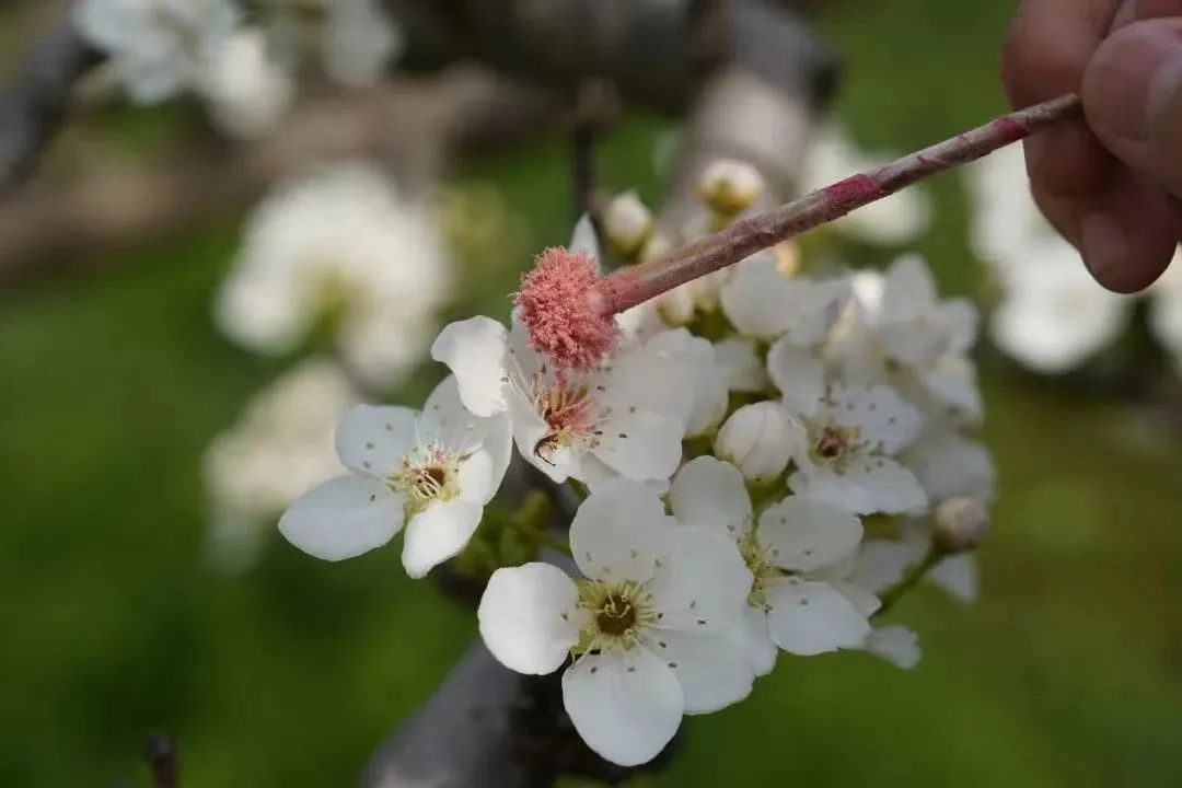 学生们化身勤劳的“小蜜蜂”,用特制刷子蘸上花粉,再涂抹在梨花上,为梨花进行人工授粉。不少学生们都是第一次为梨花授粉。有的梨花长在树梢,比学生们高出半头,学生们抬着胳膊、踮着脚尖为梨花一朵朵涂抹,忙得不亦乐乎。