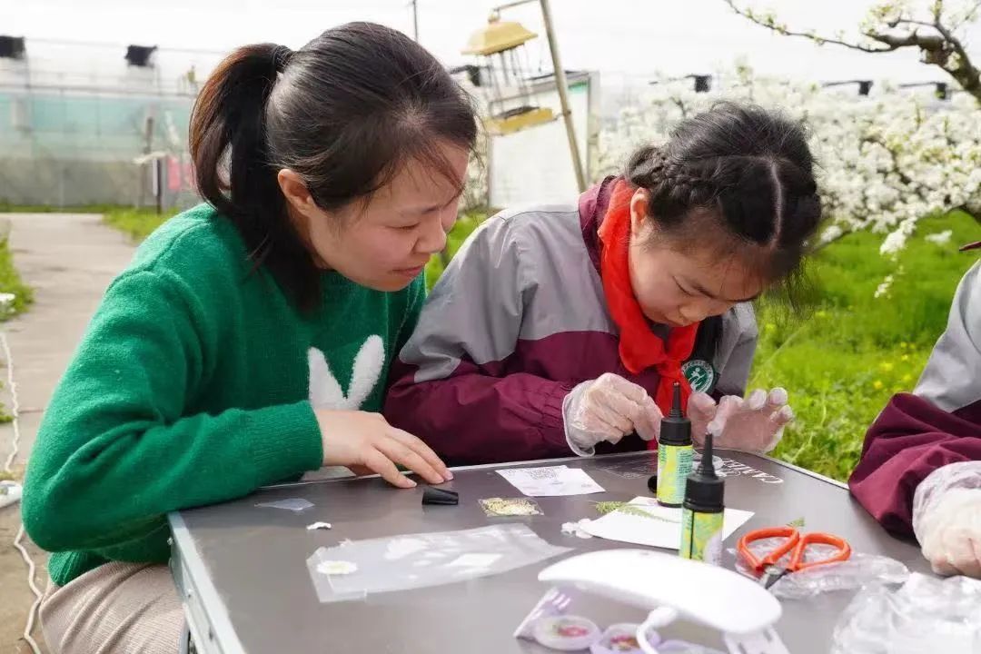 为了让梨花更好地生长,学生还在基地老师的指导下进行了疏花。摘下的花朵也没有浪费,之后,学生和家长、导师一起制作梨花滴胶、梨花饼,用手工和美食将春日定格下来。