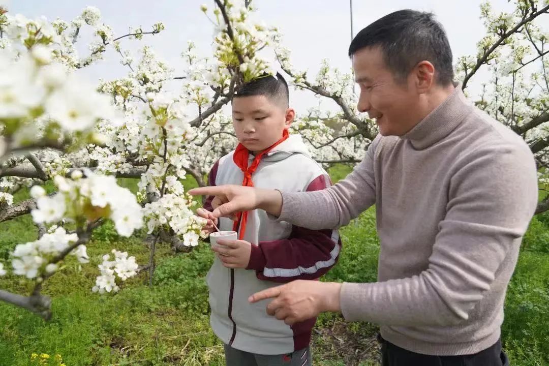 化身“小蜜蜂”为梨花人工授粉,和爸爸妈妈一起做梨花滴胶,吃一口亲手制作的梨花饼……在这漫天的梨花烟雨下,孩子们上了一堂生动难忘的劳动教育实践课。