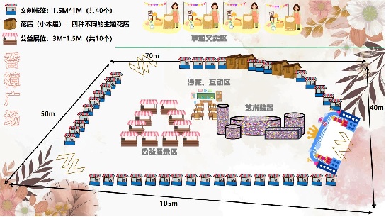 本次市集主题为“森呼吸,放青松”,整个市集共分为市集共设艺术文创、爱心公益、运动体育、自然课堂、市民艺术装置五大展区,设计展位50余家:包含35家艺术文创展区、10家公益展区、5家春日百花周边配套,分为全时段展区与周末快闪展区。这也是公园首次和上海市民政局社会组织服务处指导下的“太阳公益市集”的首次携手合作,用花香和公益共同渲染美好的春日氛围。