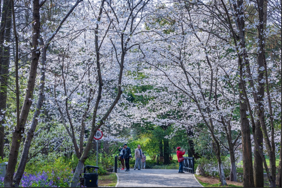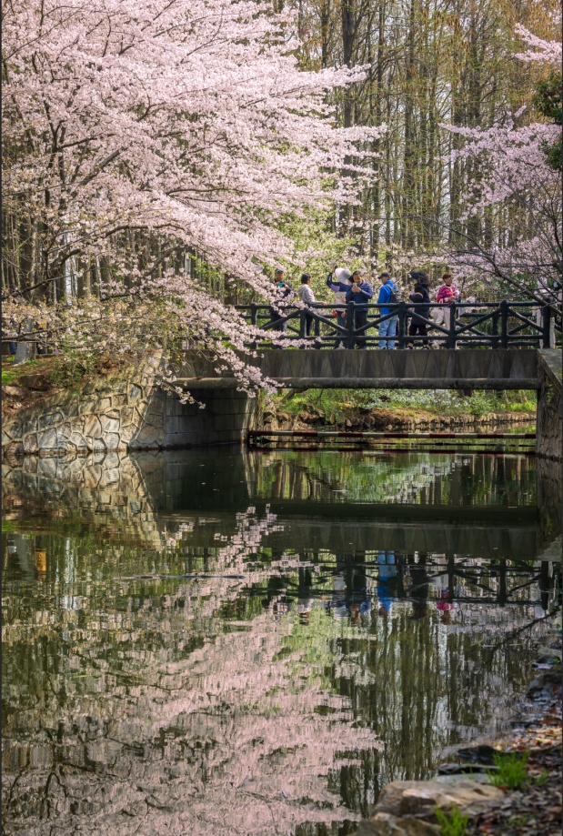 娇艳欲滴的海棠、色彩艳丽的桃花、落英缤纷的樱花如云霞般梦幻多姿,呈现一派“翠林映花海,红景绣春堤”的风光,让游客尽享百花齐放、美轮美奂的春景。