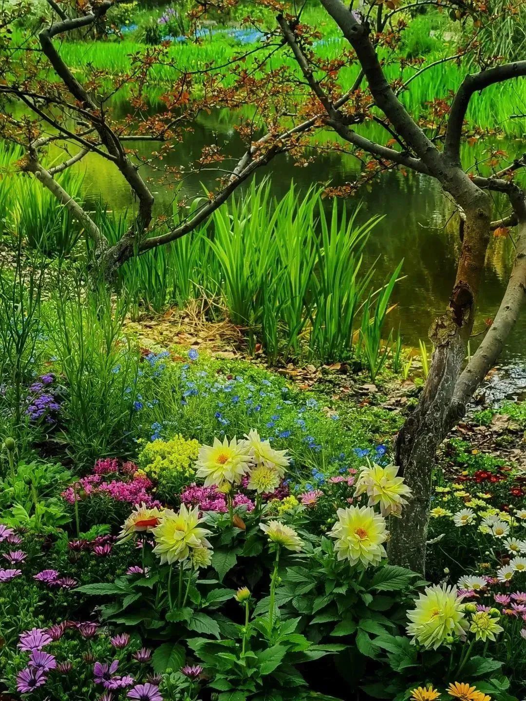 华明桥畔布置缤纷花境,野趣自然,又如同莫奈花园般朦胧浪漫,令人陶醉。