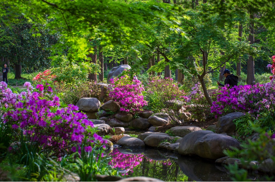 同时春季也是野花野草生长旺盛的季节,大量的野生草本花卉增添了公园林下景观的灵动之美,呈现一片自然野趣风光。