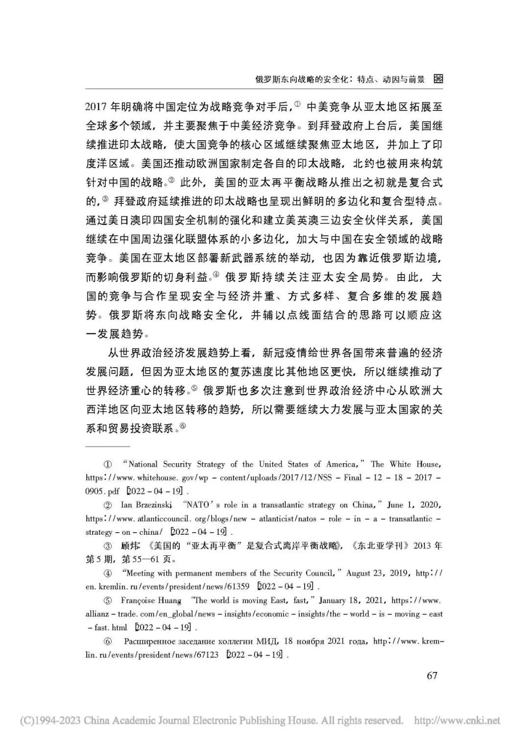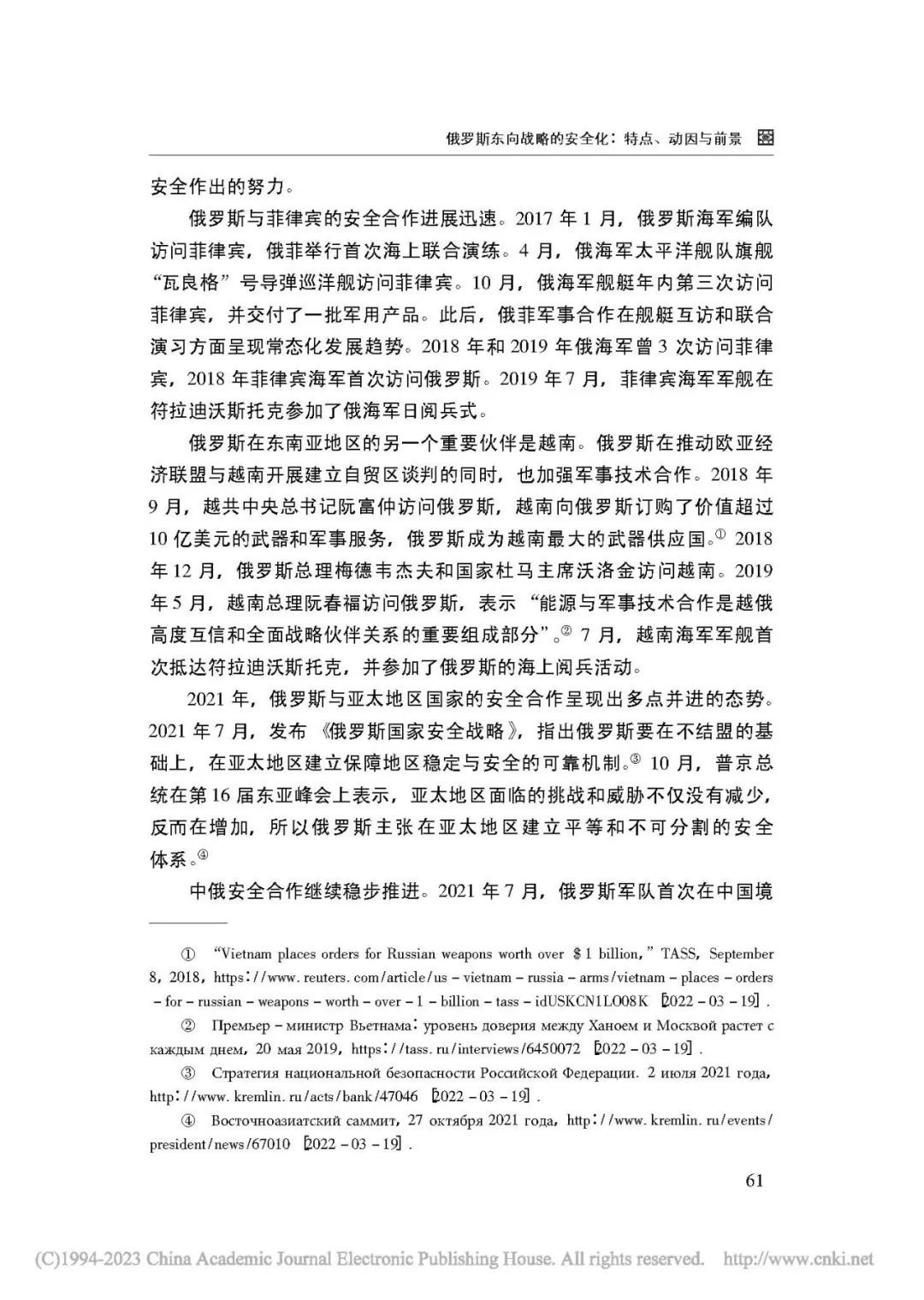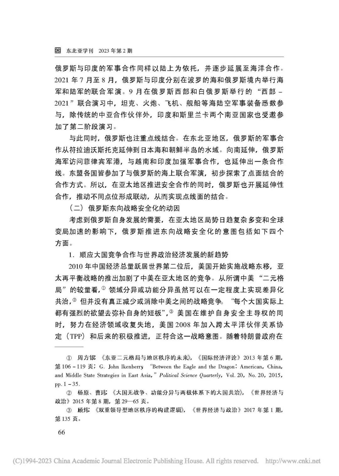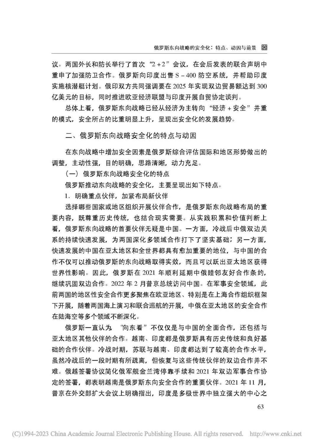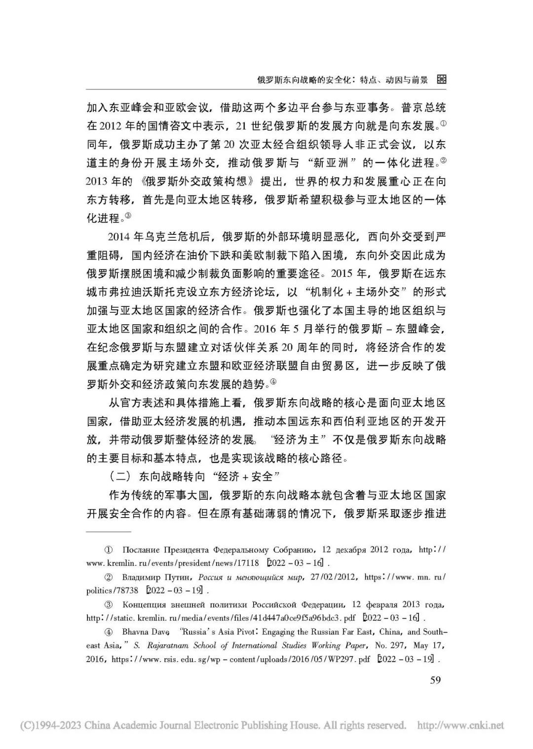 [关键词] 俄罗斯外交 东向战略 安全化 亚太地区 印太战略