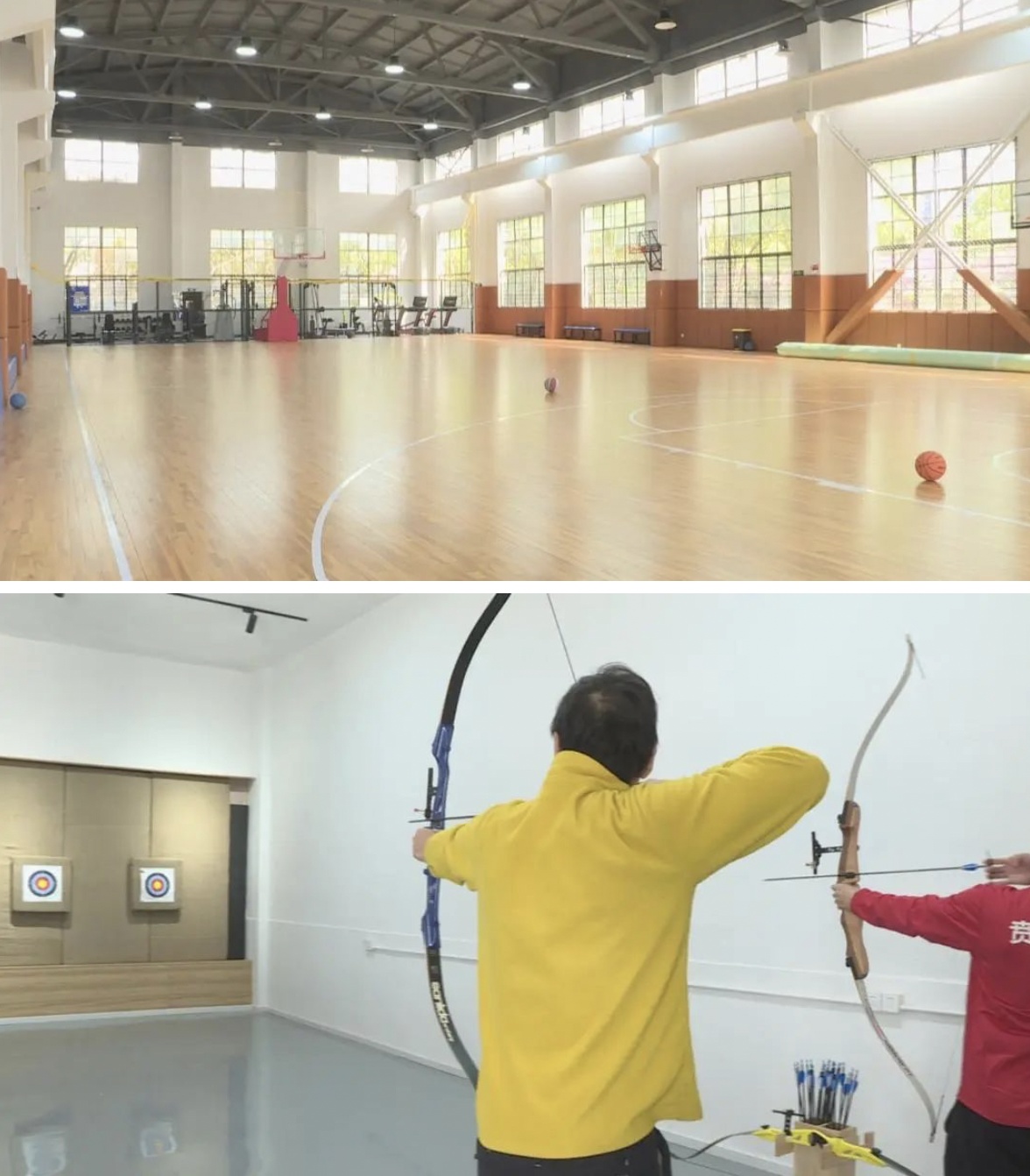 据了解,运河北路老旧厂房区位于南桥镇老城区,紧邻着四五个居民区,由于附近地块大多是多年留下来的工业厂房,附近居民想锻炼身体,除了一些小型健身点外便无处可去。2022年,奉贤区本地体育品牌奉鹰体育租赁下这片老旧厂房,经过改造,虽然外部还能看出岁月的痕迹,但内部已经焕然一新。如今这里拥有比赛级的标准篮球场、羽毛球馆,还新建了射箭、冰壶以及一些综合性健身区域,这让周边居民和体育爱好者,拥有了“家门口”的专业运动场所。