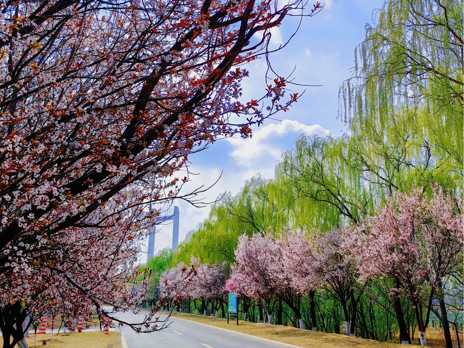 仲春时节,山东省济南市槐荫黄河大堤沿线八千余株紫叶李竞相绽放,在和煦的春风中,白云悠悠,大河滔滔,杨柳依依,绯红片片,勾勒出一幅美丽的生态画卷。近年来,槐荫河务局聚焦“多彩槐荫”建设,坚持安澜为本、生态优先,精心筑造沿黄生态屏障和绿色长廊,融水利工程建设与自然景观为一体,全力打造生态优美新高地。(大众日报客户端记者 方垒 通讯员 冯天 张舒译 报道)