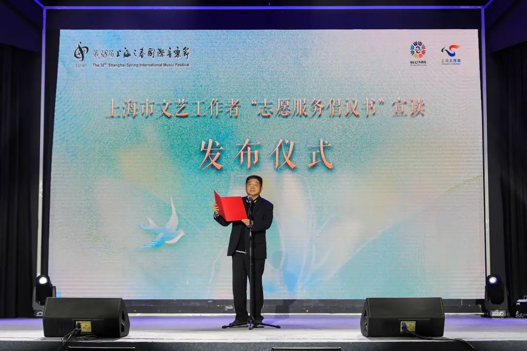 上海市文艺志愿服务总队总队长王汝刚宣读了上海市文艺工作者“新时代文艺志愿服务倡议书”,号召更多的文艺工作者加入到文艺志愿服务的行列,争当文艺志愿服务的引领者、先行者、践行者。