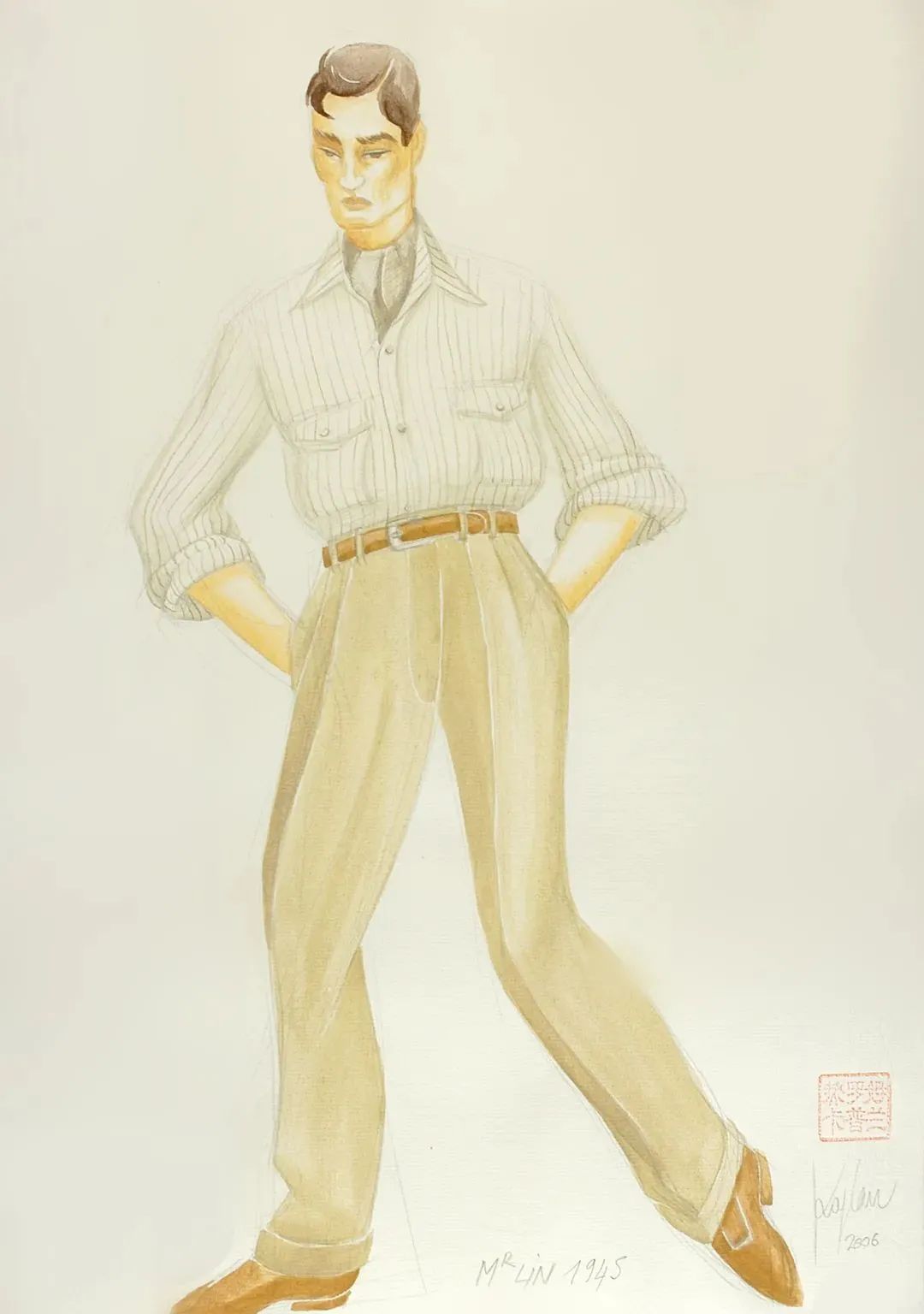 《花样年华》的服装很有特点,我们把上海的旗袍运用到女舞者的身上。因为舞者要穿着脚尖鞋,还要穿着旗袍,所以我们还要考虑到旗袍开叉的问题,如果开叉开得很小,女演员的脚是抬不起来的,所以特地设计了单侧开叉,让大家可以看到每一个精心设计的抬腿动作。