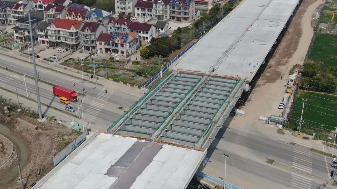 近日,随着最后一块钢梁“拼装”到位,S3公路新建工程2标结构工程中的最后一处钢-混组合梁成功架设完成,将工程的南北两段顺利接通,标志着由上海城投公路投资(集团)有限公司负责建设、隧道股份上海路桥承建的S3公路(周邓公路-G1503公路两港大道立交)新建工程高速公路主线施工2标段主线箱梁全部架设完成。