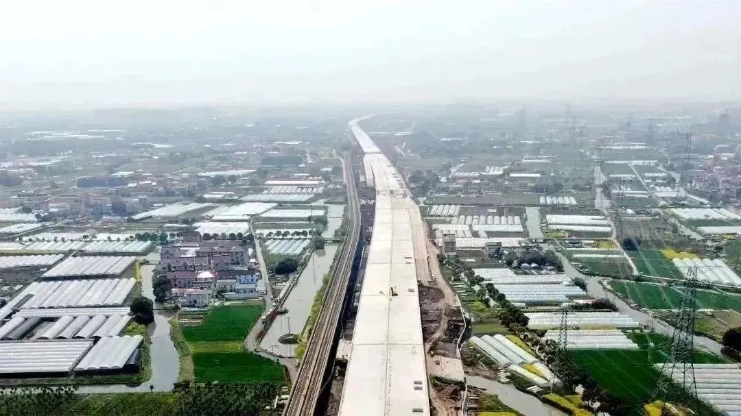 其中,2标段线路全长约7.7公里。包含主线及匝道桥梁施工、道路路基、排水、房建及临时工程等。沪南公路以北采用“主线高架+地面辅道”的形式敷设,其中主线收费站以北的高架道路为高速公路入城段。