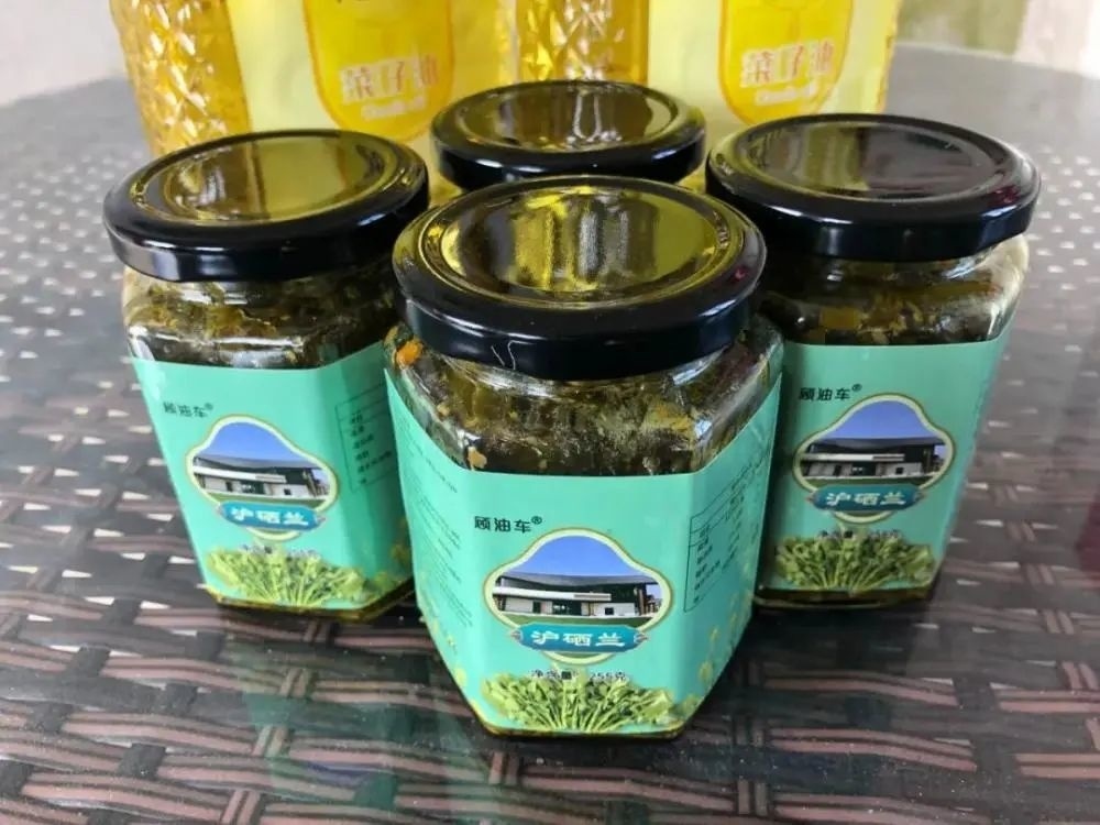 村里合作社负责人介绍说,现在,除了销售新鲜菜薹,他们还开发了周边产品,“一种是熟加工的菜薹,开瓶就可以食用;还有一种是生的,经过腌制的手法,开袋以后需要烹饪后才能食用”。
