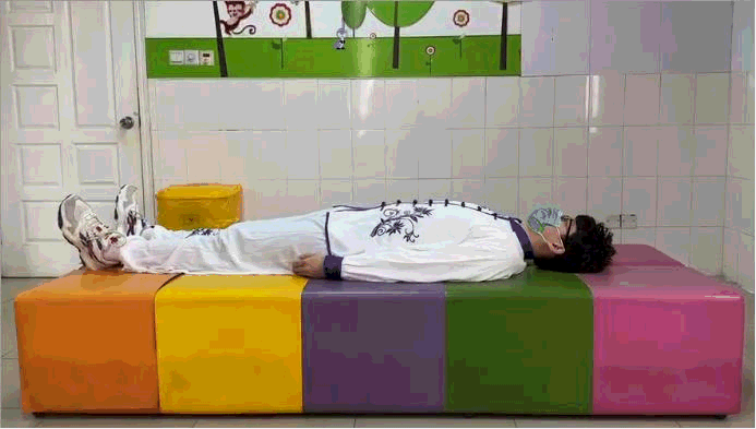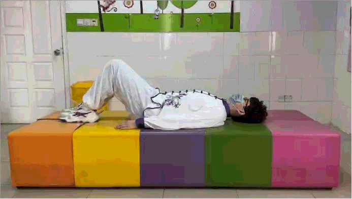 2.平躺时腰椎所受压力最小。卧床休息时应选用木板床,可于膝下放置一个枕头。