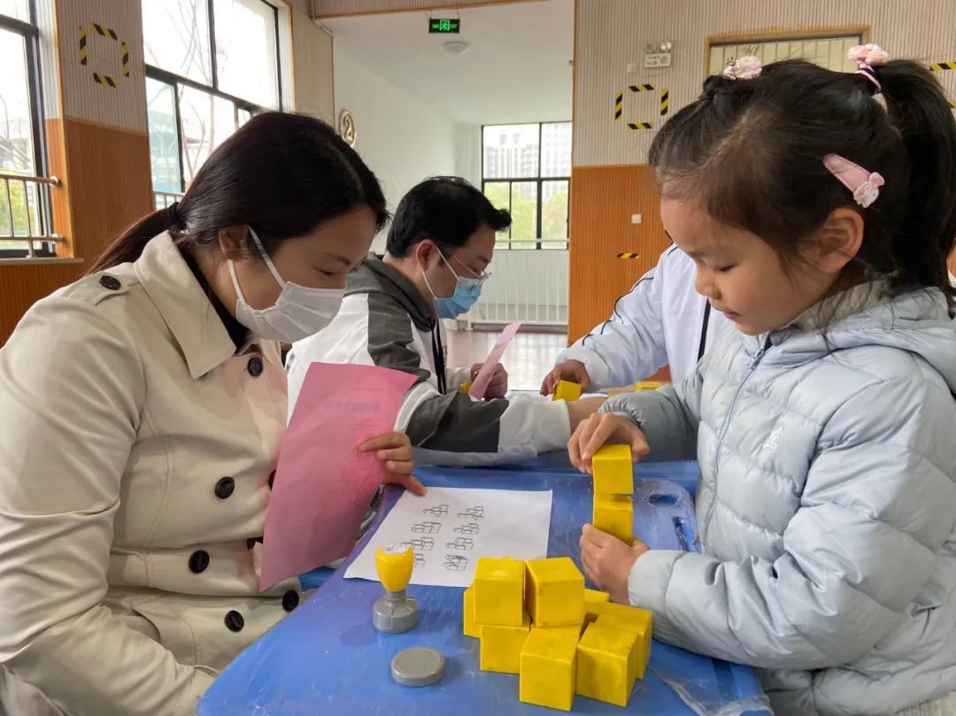 在活动现场,小朋友们手持数学游园集章卡,开心地参与每一个项目,或搭积木、或拼七巧板,时而蹙眉凝思寻求答案,时而灵动跳跃走出迷宫,动静之间点燃对数学的热情,感受数学的魅力。“又可以玩又可以学习,我感觉很有意思。”上外松外一年级学生杨思嘉说。