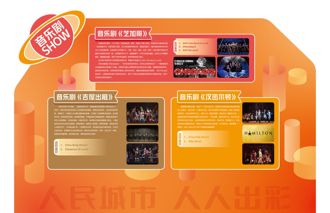 紧扣市民文化节“人民城市 人人出彩”的活动主题,区文化馆将奉上“悦享上海·艺美黄浦”海派风情文化体验活动。在黄浦滨江公共空间,“经典音乐剧SHOW”的导赏活动精选了《芝加哥》《汉密尔顿》《吉屋出租》《沉默的真相》等中外经典音乐剧剧目中一些具有代表性的片段或歌曲,并由音乐剧知识介绍,展示不同风格音乐剧的独特艺术魅力,让观众近距离地了解和接触到音乐剧文化。