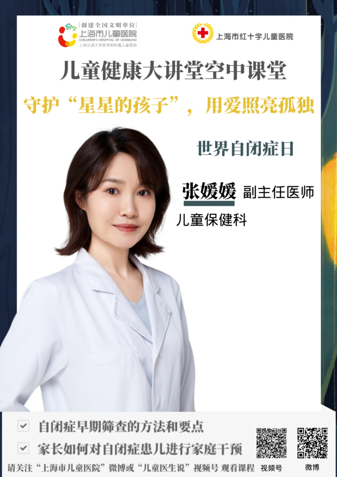 即将到来的4月2日,是第16个世界自闭症(孤独症)日。在此,我们特别邀请到上海市儿童医院儿童保健科张媛媛副主任医师,为自闭症患儿的家庭提供科学的居家干预建议,指导父母规划自闭症孩子的人生。让我们一起帮助自闭症孩子穿越孤独,融入我们的世界。