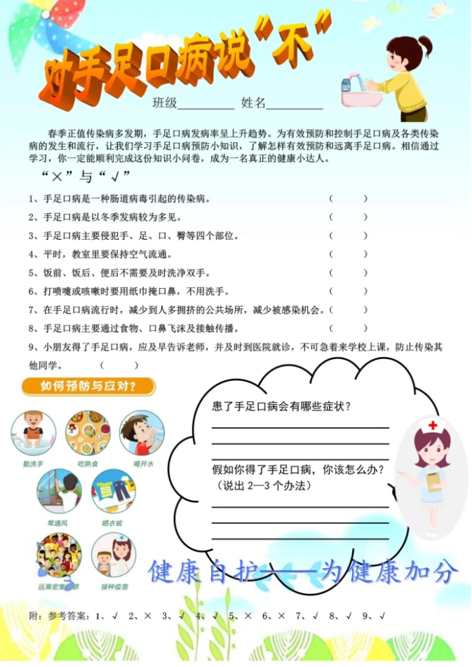一年级:对手足口病说“不”