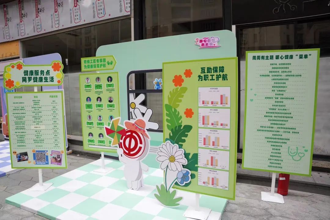 静安区总工会以四季为主题,现场打造“春夏秋冬”四节车厢,提供具有静安特色、提升职工生活品质的主题服务——如健康服务点劳模工匠专家团巡诊、巡讲特色活动介绍,区总工会“五送三实”关爱行动,职工互助保障、就业服务、法律援助,爱心接力站站点信息,“爱在上海,品味静安”主题活动、工会陪你过大年展示等,全方位展现静安工会“四季有情”的温暖。