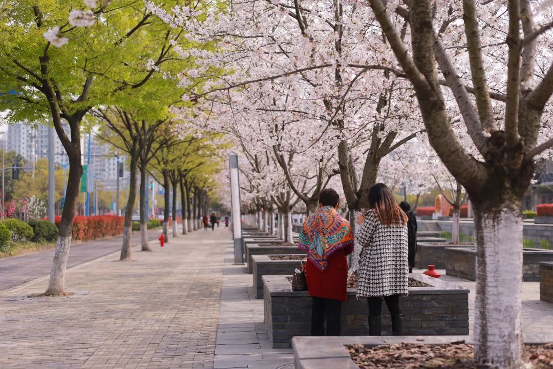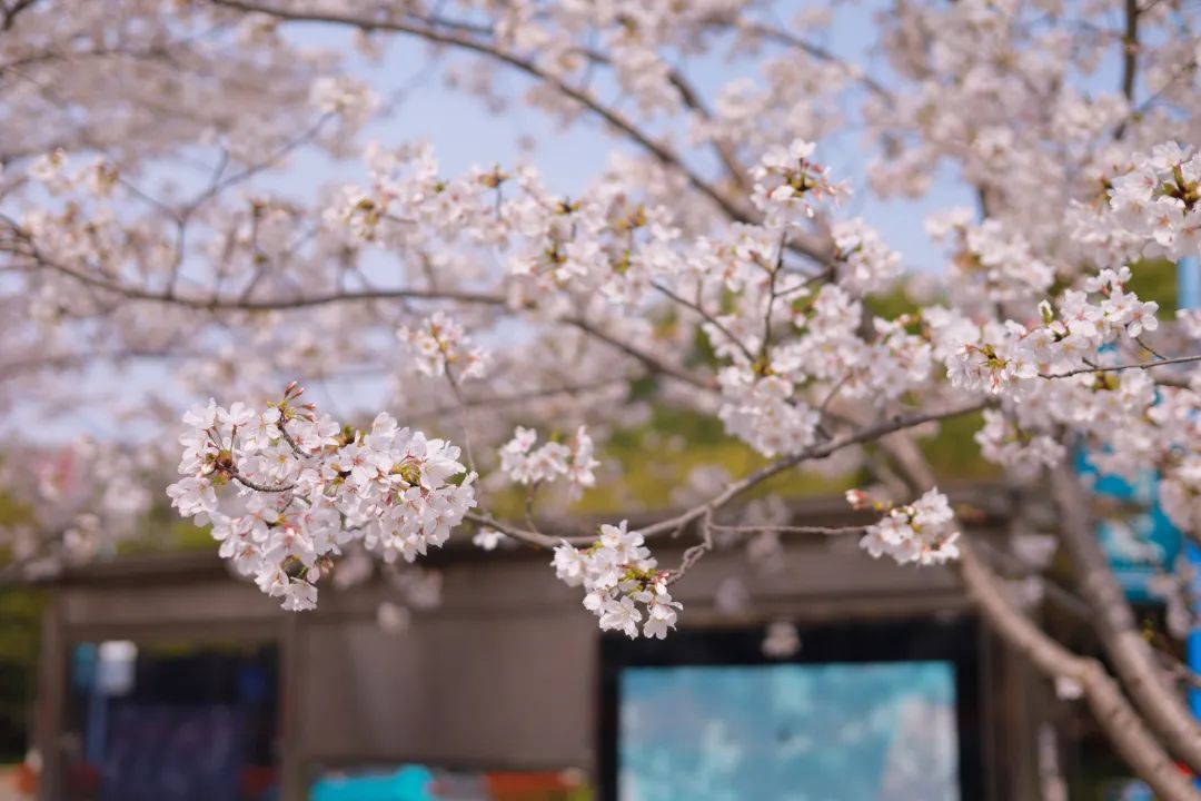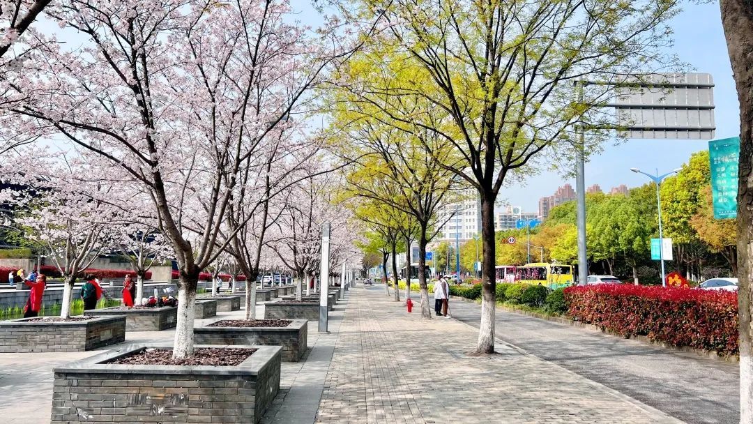 走在华青南路上,你会遇到一个网红车站,车站旁大片大片的粉白缀满枝头,无论是候车的市民还是路过的行人,都会忍不住为这一抹粉色停下匆忙的脚步。当一阵清风吹过,飘落的樱花漫天飞舞,目光所及,皆是春色。