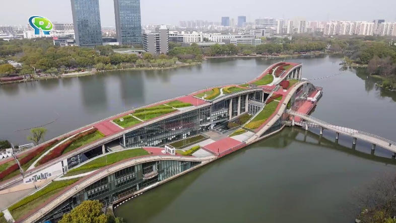 散步之余还能逛逛坐落于夏阳湖上的青浦区图书馆,它生动地体现了“天人合一”“人水合一”的理念,图书馆三面环水,整体呈波浪状向湖中心延伸,如同翻卷的浪花想要奔向夏阳湖的怀抱,阳光洒下,与粼粼波光交融在一起,让你在读书之余也能感受到湖光水色带来的舒适和宁静。