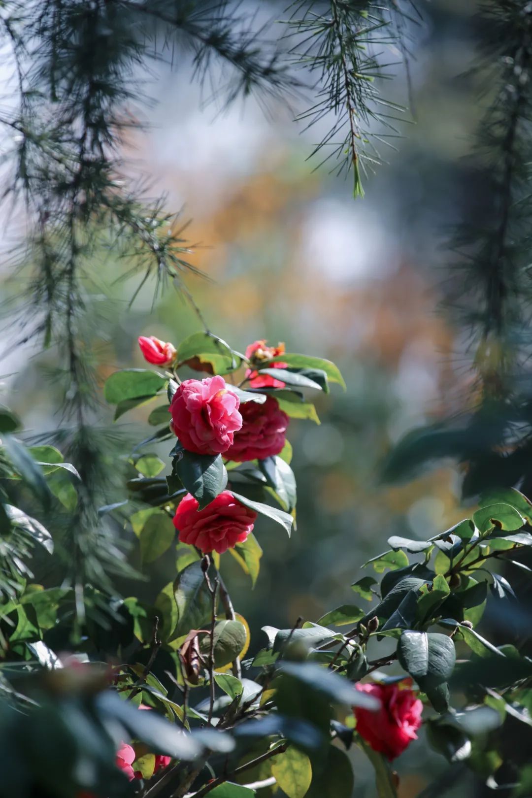 花骨朵间露出黄色花蕊,冷艳丰盈