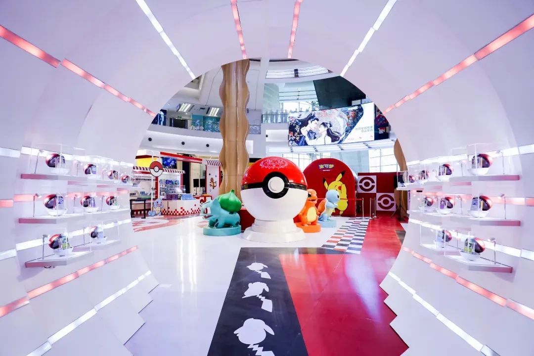 此次坐落在大悦城南座3楼中庭的宝可梦卡牌精灵球主题快闪店,在整体保持经典红白配色、绚亮夺目视觉效果的基础上,打造了近200㎡的主题展区。