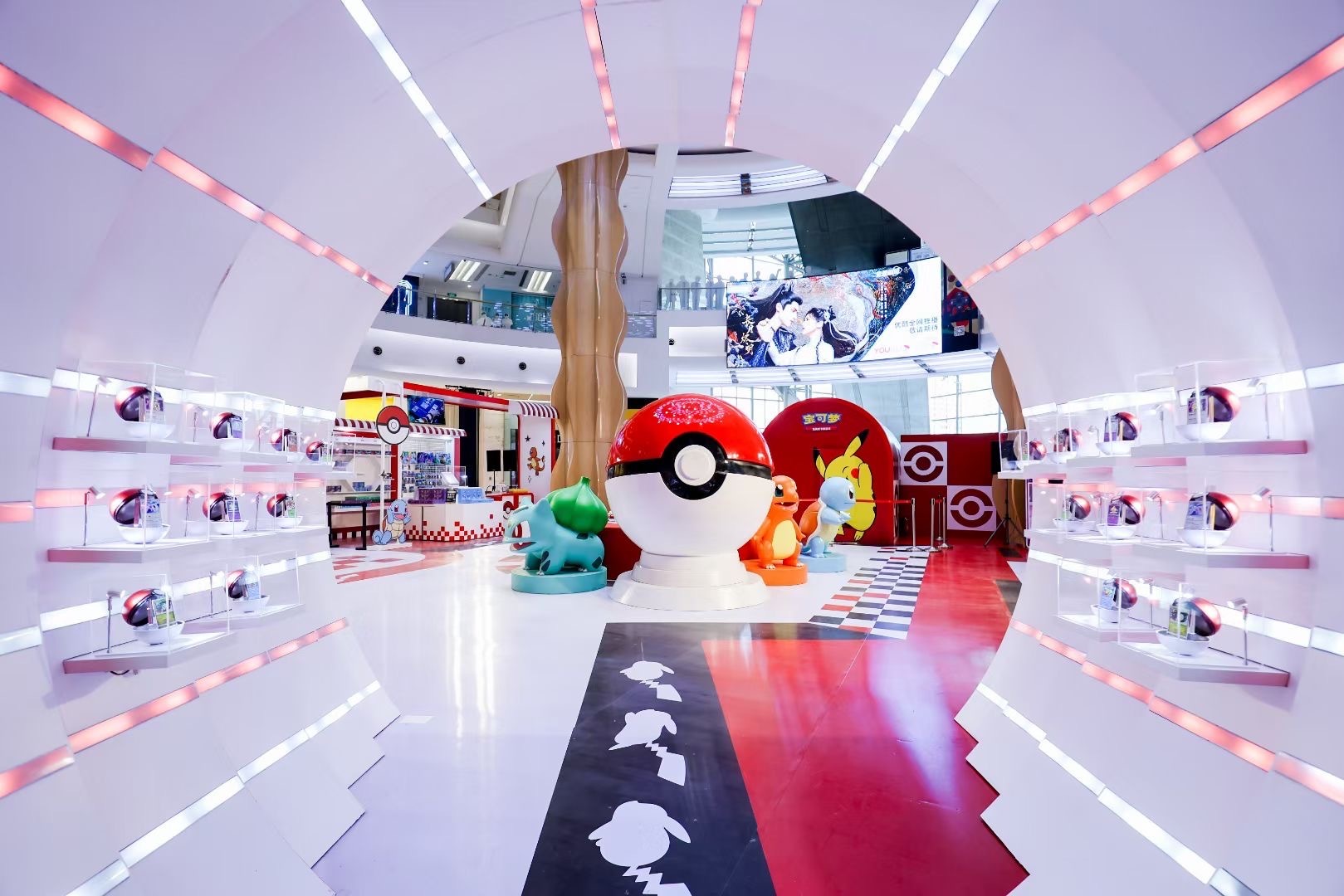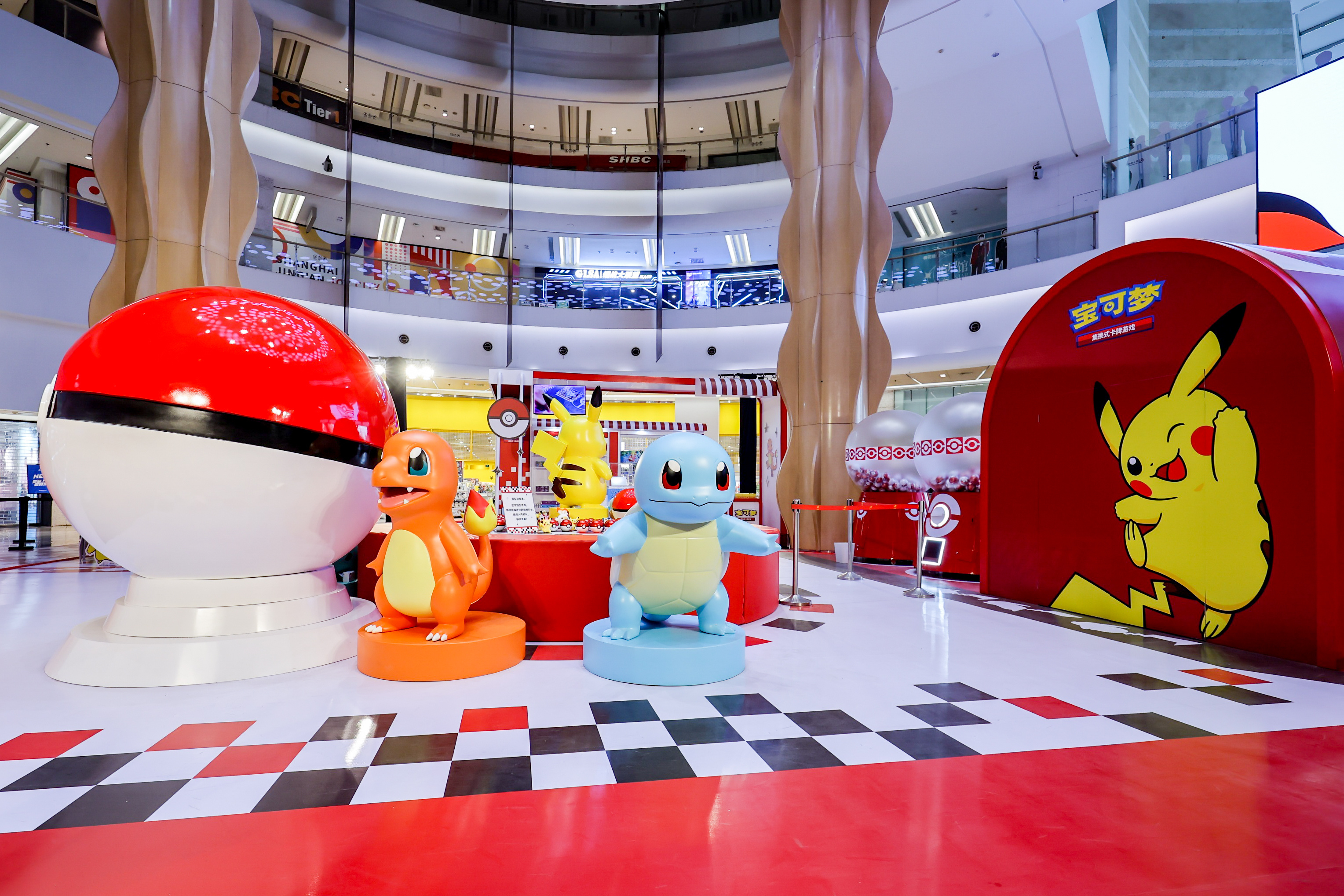 此次坐落在大悦城南座3楼中庭的宝可梦卡牌精灵球主题快闪店在整体保持经典红白配色,绚亮夺目视觉效果基础上,打造了近200㎡的主题展区。