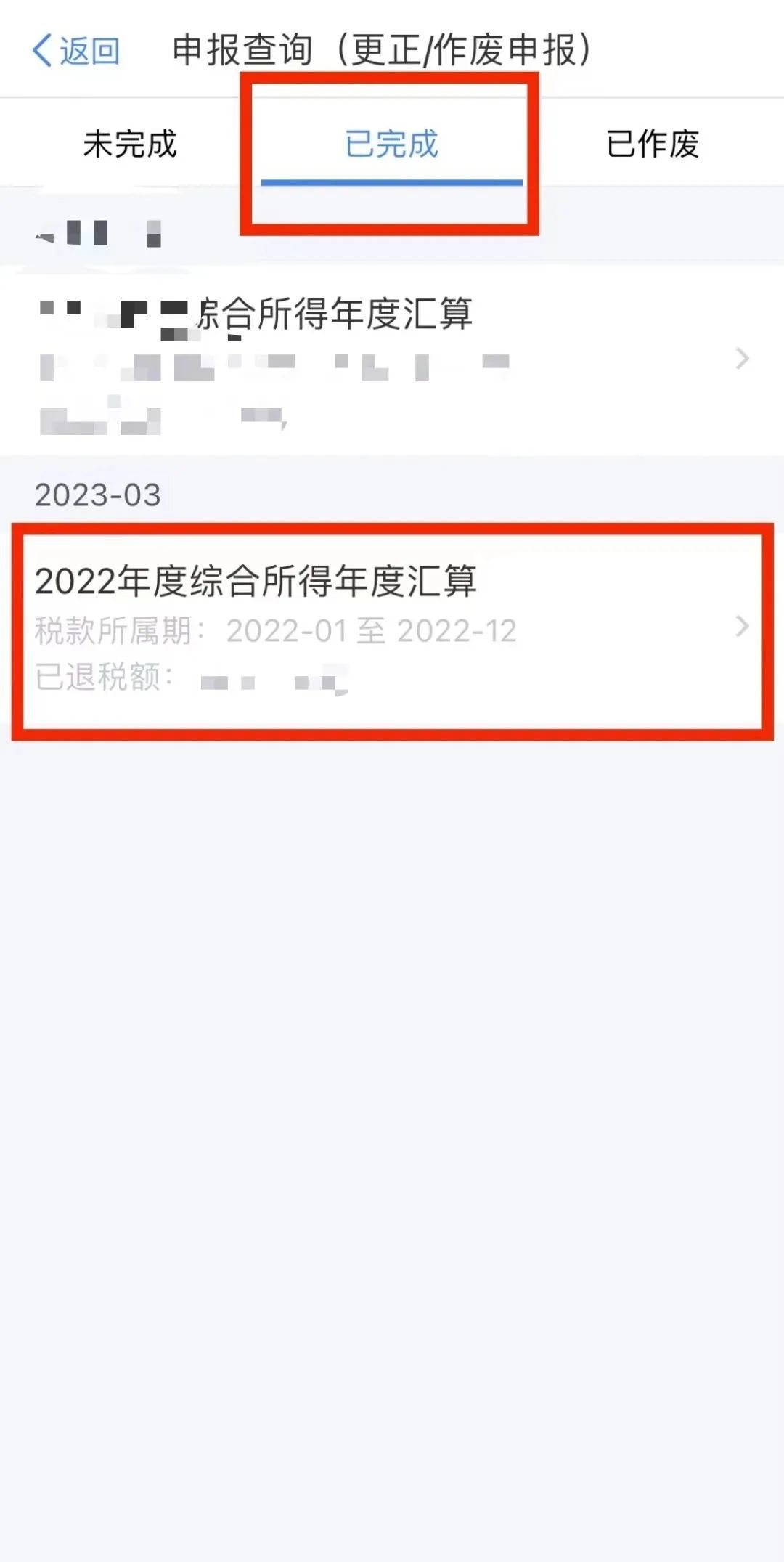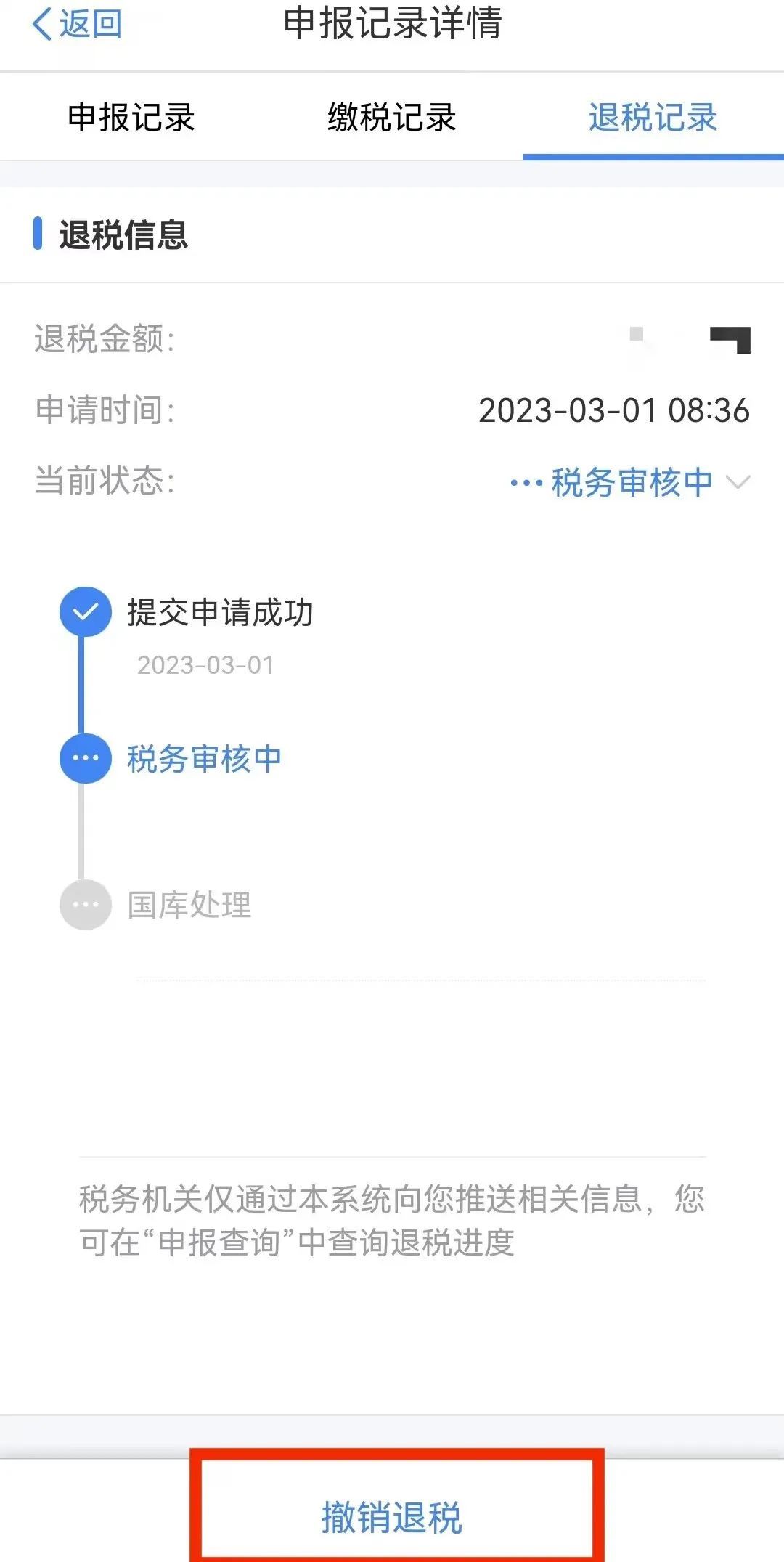 打开个人所得税APP完成登录,点击【我要查询】——【申报查询】——【已完成】——【2022年度综合所得年度汇算】,选择【退税记录】,点击【撤销退税】。