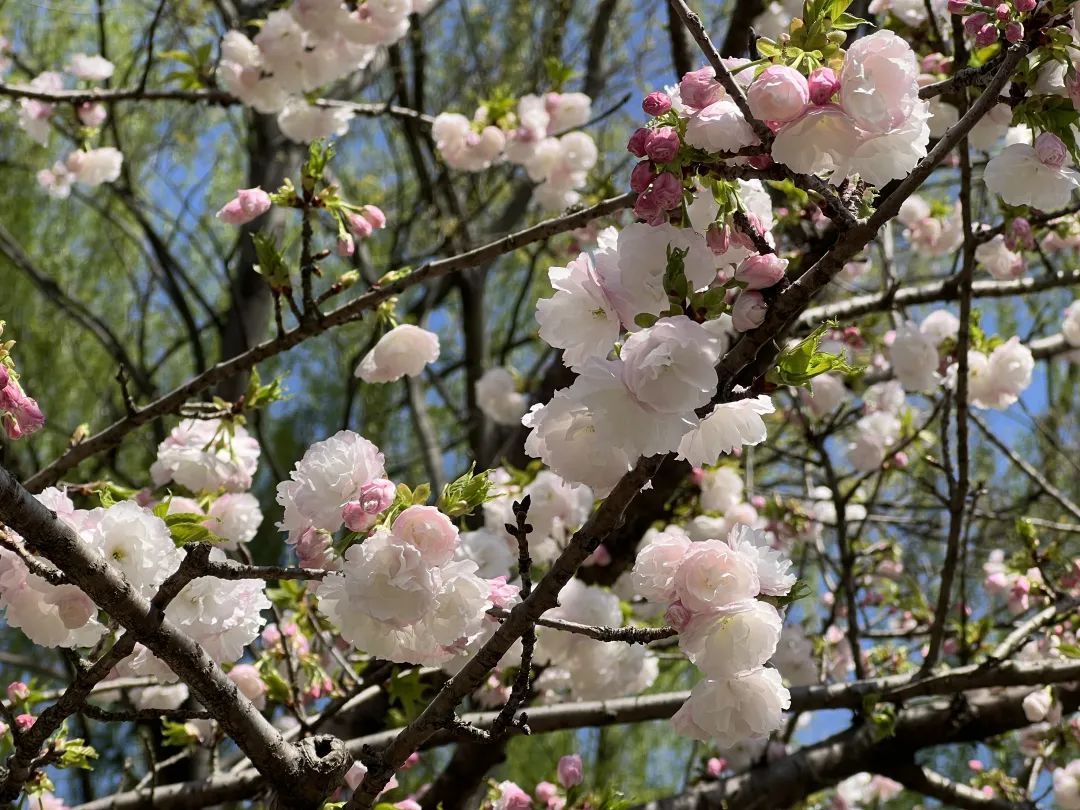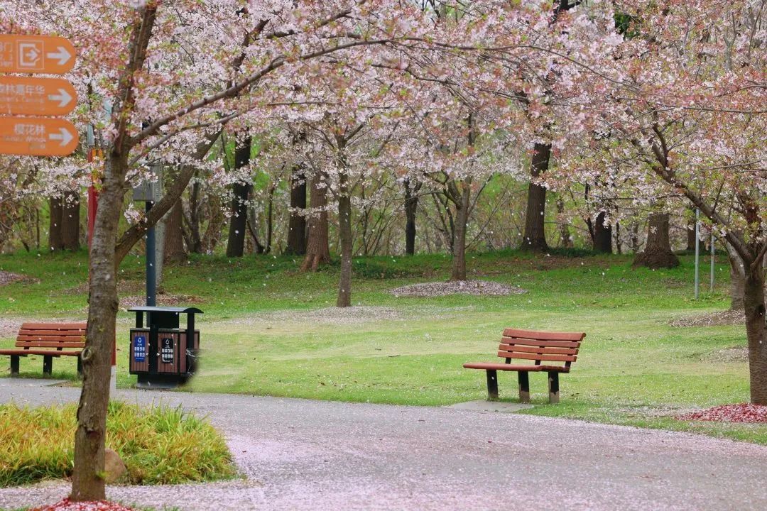 若想邂逅浪漫壮观的“樱花雨”,目前是最好的时节。随着下周周中雨水到来,染井吉野的观赏期就将结束。不过,公园内的晚樱已接力登场,兰兰、郁金、松月、白妙、白雪、八重红大岛等30余个晚樱品种盛放枝头,带来今年樱花季的又一波绚烂。