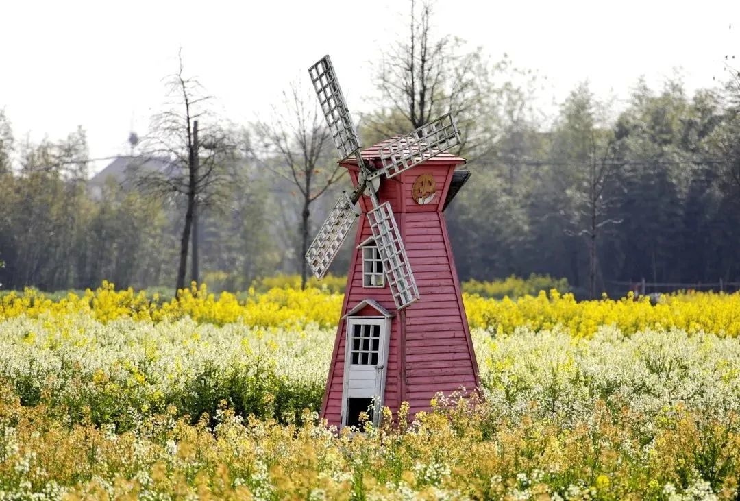 春日里的油车村,同样处处彰显着盎然生机,大片五彩油菜花将田园美景带到了游客身边,展现上海市乡村振兴示范村的独特之美。2019年,亭林镇从外地引进油菜花品种,独特的“五色菜花”吸引了许多游客驻足。