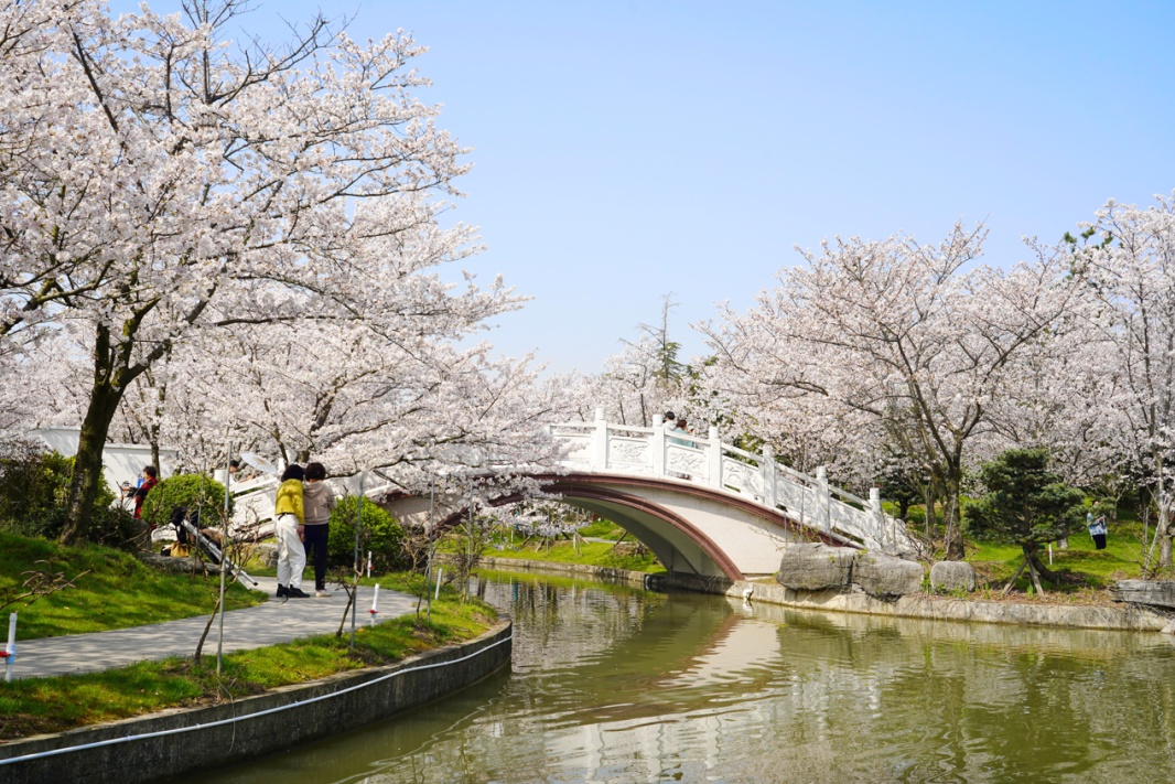 在全国首家驾校公园——位于亭林镇亭西村的亭林驾校公园内,有一个樱花主题公园,每年樱花季,许多游客慕名而来,感受春天的气息。走上樱花步道,200多棵樱花树排列在两侧,梦幻的樱花争相竞放。步道蜿蜒至深处,就是50亩的樱花主题公园。亭榭映湖处,500多棵樱花树环抱,一朵朵粉白的樱花在枝头绽放。盛花时节,一条1.5公里长的樱花大道花开如云似雪,美不胜收……