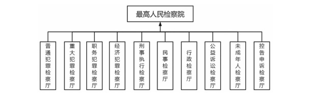 目前,各级检察机关内部均根据职能类型的不同划分了不同部分。例如,最高人民检察院现共有十个检察厅。