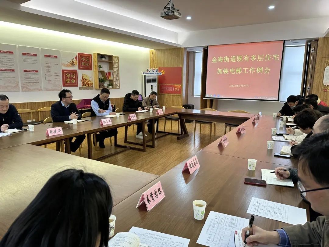 在整个加装电梯过程中,金海街道多次召开加装电梯协调会,助力加装电梯“加速度”;金水苑、金水新苑党支部以党建引领,充分发挥“三架马车”作用,居委、业委、物业共同发力,发动党员干部、志愿者、楼组长等力量,各相关部门相互配合,动之以情,积极协商沟通,多次政策宣传、意见征询等,2022年底结合美丽家园改造实施既有多层住宅加装电梯工作以来,已完成征询并签约6台,储备有较强加梯意愿楼道18个。