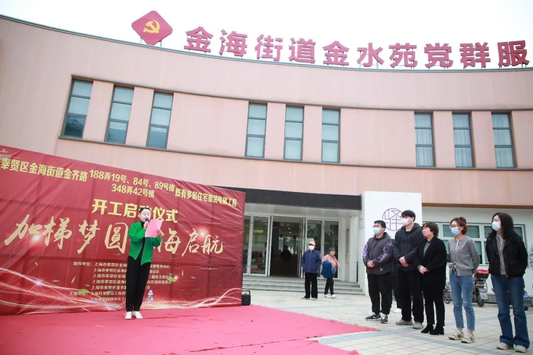 开工仪式的举行,代表着老旧小区居民将尽早享受到电梯带来的出行便利。金水苑、金水新苑建设年代较早,是金海街道第一批动迁小区,老龄人口比例大,许多老年人特别想实现“一键上下”,提升他们的生活出行和生活质量。