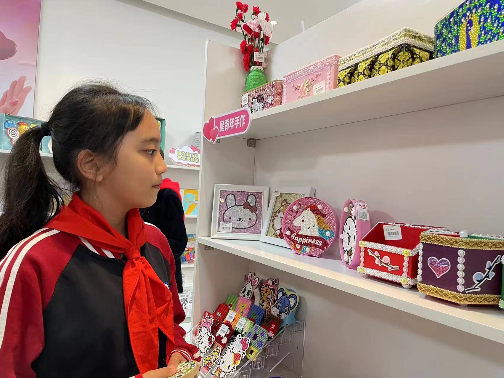 慈善超市内设单独货架,售卖“星青年”手工艺品