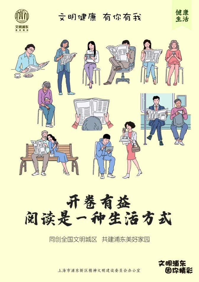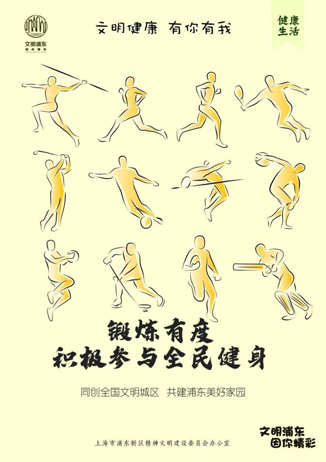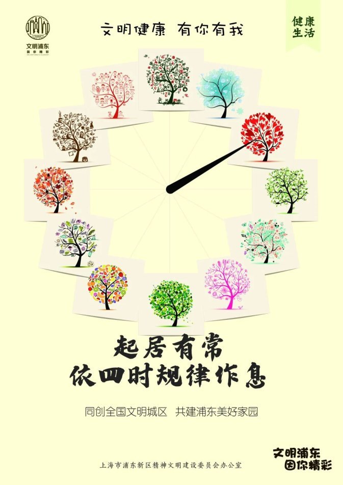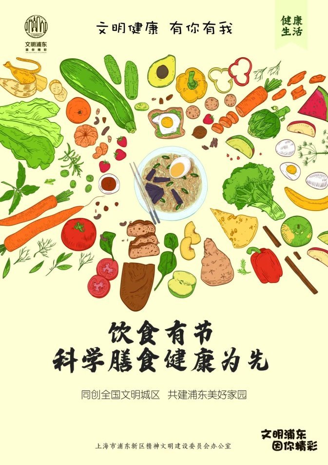 上海市浦东新区精神文明建设委员会办公室制作了系列海报,呼吁大家保持良好的生活习惯,拥抱健康生活。