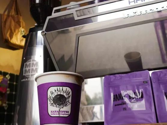 HANA COFFEE成立于2019年,团队均有10年以上咖啡工作经验。紫色帝王花设计和“coffee is my boyfriend”为门店logo。门店各处可见标志性紫色元素。以深烘豆的完美萃取为主体。
