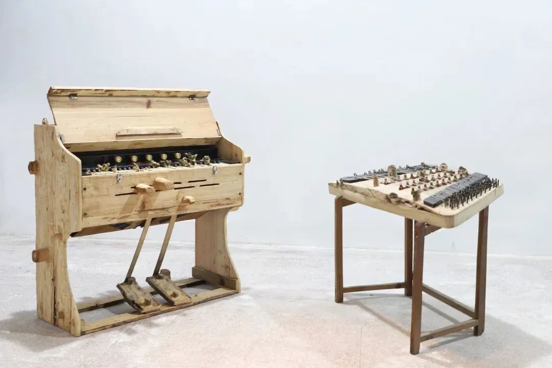 罗丹的《渡瘿——乐器系列》当属“器物雕塑”的范畴,我们看到的是“风琴”和“扬琴”,但作者并不是想制作真的琴,而是在研究木,研究材料。她的作品不同于一般器物对完整、光滑的要求,而是关注木材生长过程中的残缺。木与“瘿”;木质琴上的瘿与木结,展现了材料所包含的内在矛盾,展现了生命本身的丰富性和生命必须要面对的不完满。