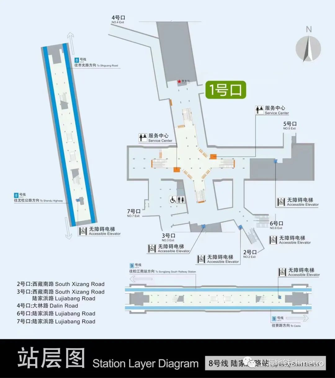 上海轨道交通8、9号线陆家浜路站1号出入口于2023年4月3日正式恢复开启。1号口恢复启用后,该出入口配套的自动扶梯同步恢复启用。