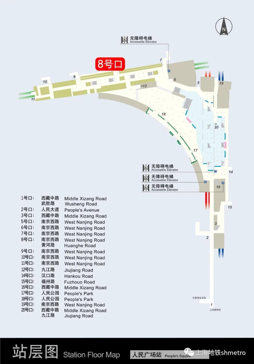 为配合出入口自动扶梯加装施工,1、2、8号线人民广场站8号出入口自2023年4月11日起封闭施工,提请乘客注意。