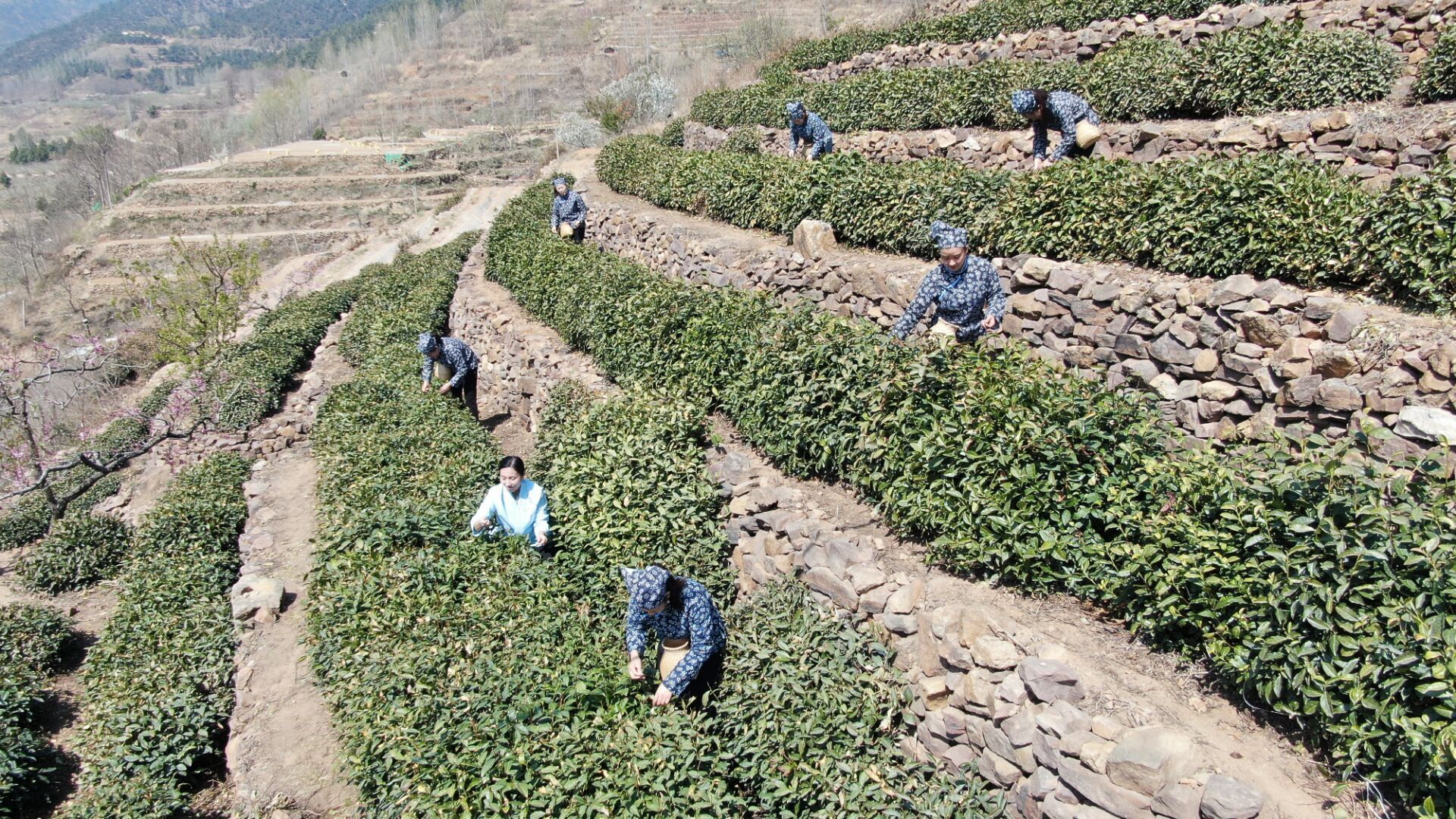 4月2日,临沂市沂水县院东头镇田家峪茶叶基地,沂蒙山春茶开始采摘,这是我省境内天然陆地“明前茶”(清明前采摘春茶)最早的采摘活动。据悉,沂蒙山茶园位于北纬36度,是中国最北的茶叶产区之一,茶树多数是上世纪五六十年代“南茶北引”在此栽种,共有3000余亩,这里气候环境适宜,土地肥沃,海拔高度约800米,是优质高山茶叶的生长理想之地。(大众日报客户端记者 卢鹏 报道)