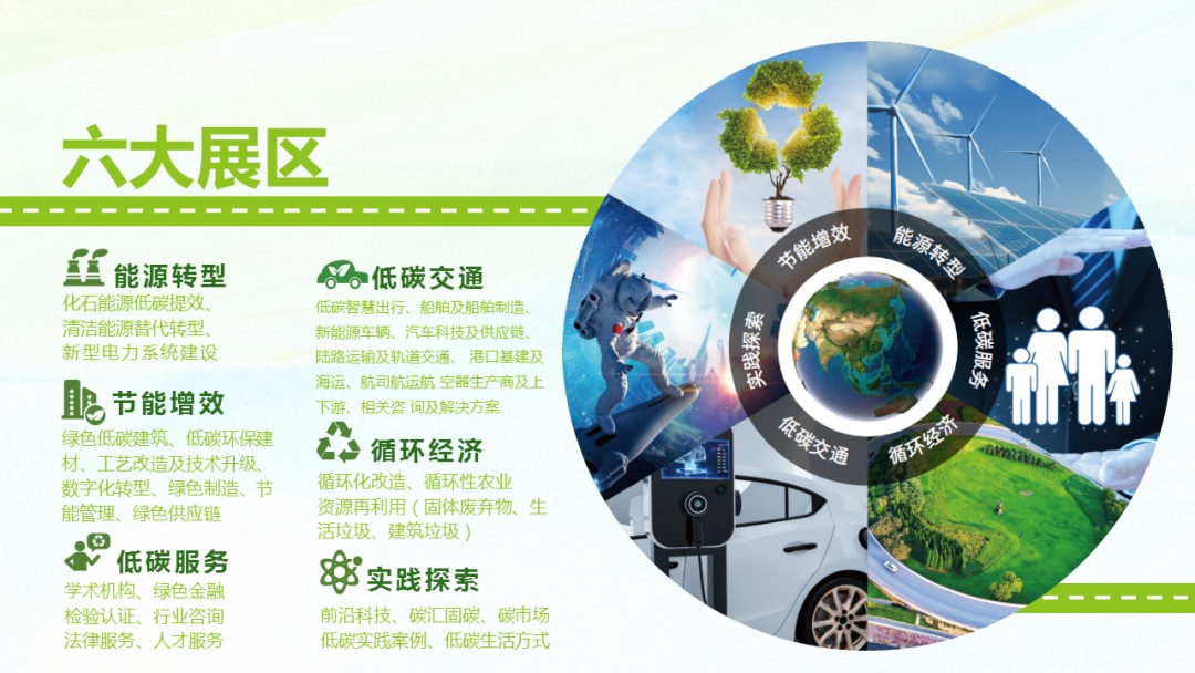 内容涵盖能源转型、节能增效、循环经济、实践探索、低碳服务、低碳交通等六大板块。