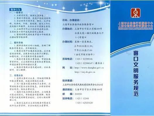 以政务服务标准化为依据,打造“文明窗口”。出台《上海市水务局(上海市海洋局)政务服务大厅建设和运行管理规定》,制定《窗口文明服务管理规范》,按照“前台综合受理、后台分类办理、统一窗口出件”的综合窗口模式,合理设置咨询引导、自助服务等功能区。